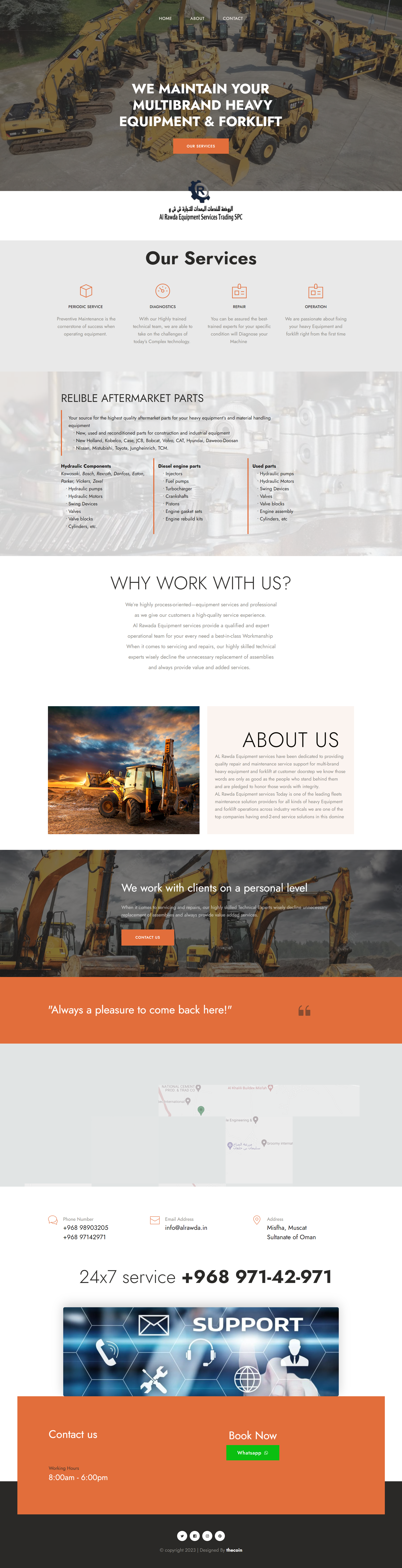 Al Rawda Equipment Services provides high-quality maintenance and repair services for multi-brand heavy equipment and forklifts in Oman. The company’s services focus on periodic maintenance, diagnostics, repairs, and operations for heavy equipment and forklifts. Al Rawda’s skilled technical team excels in working with complex machinery, offering reliable service from the very first time.